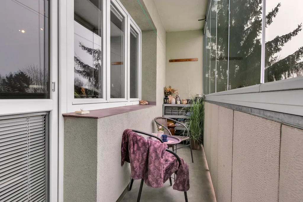 • Na obývací pokoj navazuje velká zasklená lodžie – ideální místo pro relaxaci i posezení po celý rok.