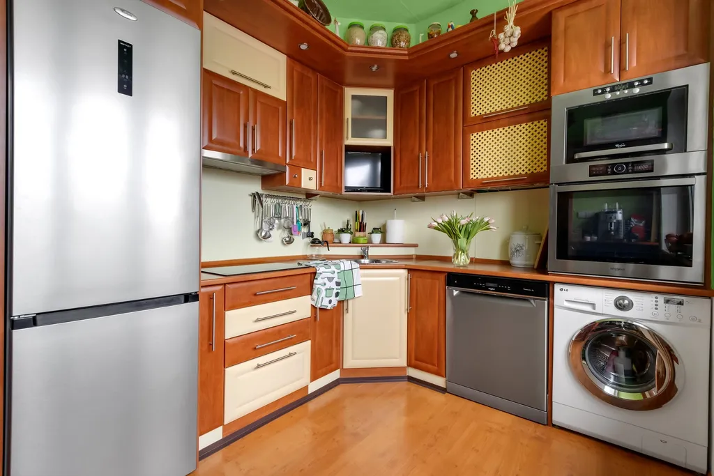 Kuchyně nabízí dostatek pracovního i úložného prostoru a je plně vybavena kvalitními spotřebiči: