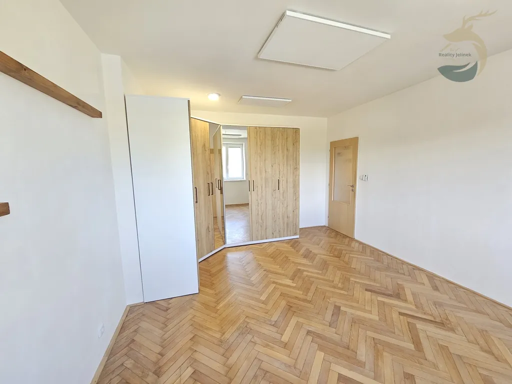 Interiér doplňují parkety, vestavěná šatní skříň, předokenní roleta v ložnici a sítě proti hmyzu.
