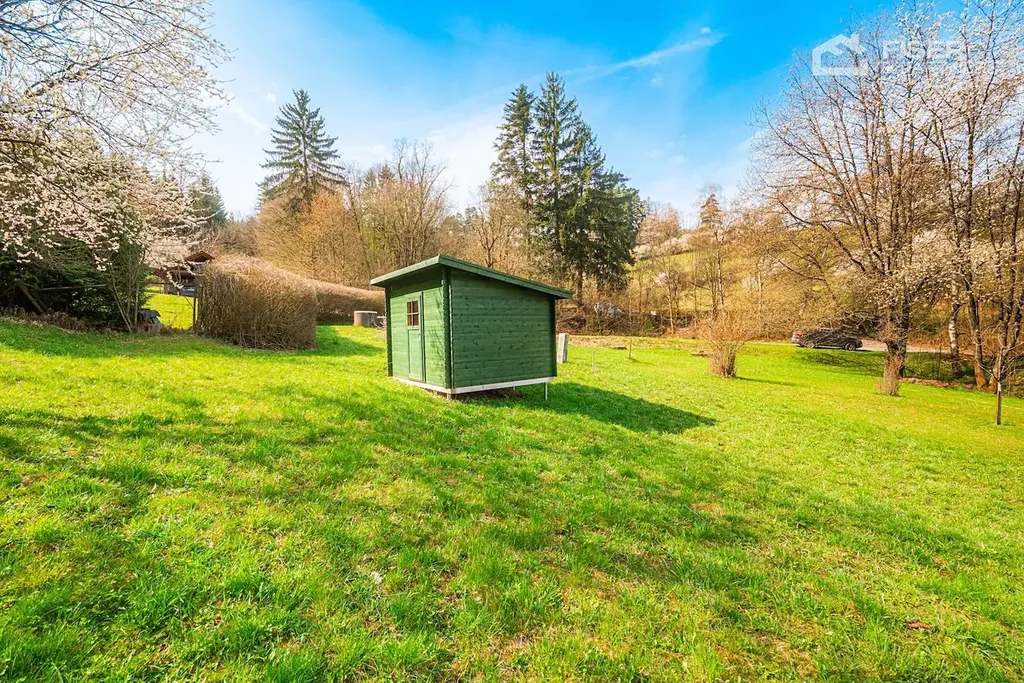 Součástí prodeje je navíc lesní pozemek o velikosti 673 m2, který navazuje nad parcelou a přirozeně rozšiřuje prostor i pocit soukromí. K pozemku vedou dvě přístupové cesty. Asfaltová ke spodní části a lesní k horní části pozemku, což nabízí variabilitu využití. Elektřina a kanalizace jsou přivedeny přímo k pozemku, voda je řešitelná napojením na obecní vrt v těsné blízkosti, případně vlastním vrtem. K dispozici je také možnost budoucího napojení na plyn. Součástí prodeje je i zahradní domek na patkách, vhodný jako zázemí při výstavbě.
