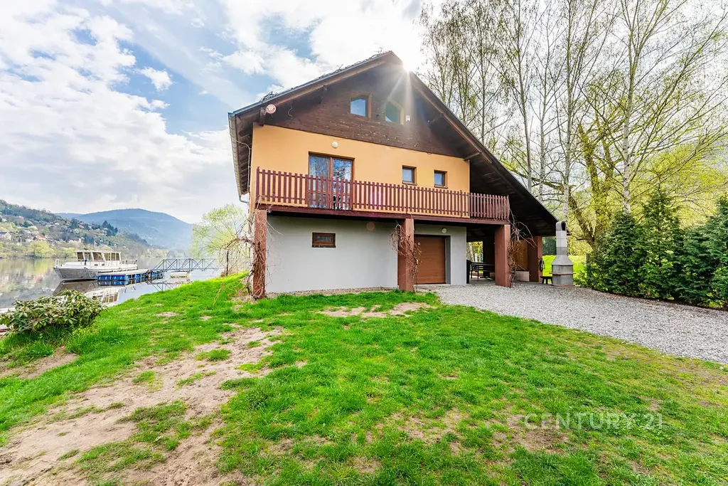 • Exteriér: Oplocený travnatý pozemek 422 m², dálkově ovládaná brána (mobilní telefon), vlastní molo, venkovní posezení s krbem v závětří domu.