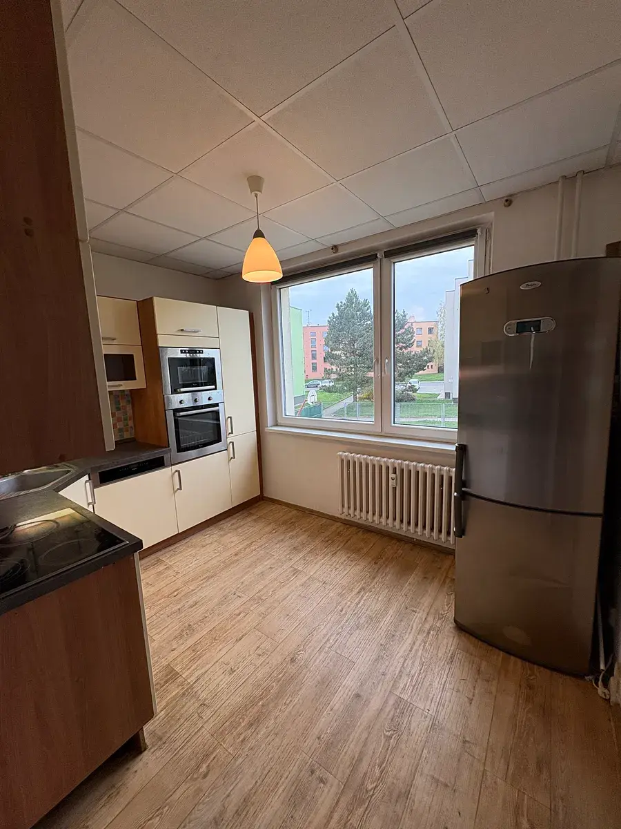 V bytě se nachází kuchyně s rohovou kuchyňskou linkou a spotřebiči, zděná koupelna s velkým sprchovým koutem a umyvadlem, WC je oddělené. V celém bytě je vinyl, v koupelně dlažba.