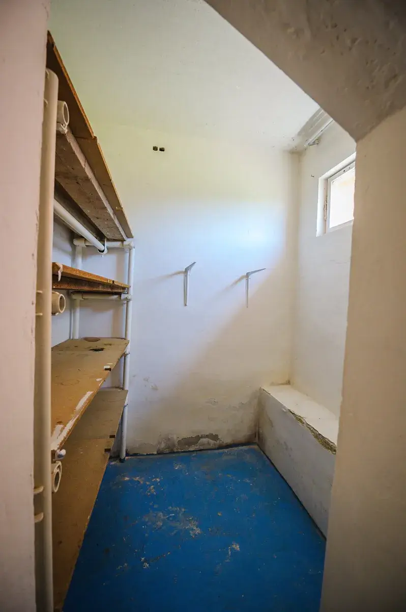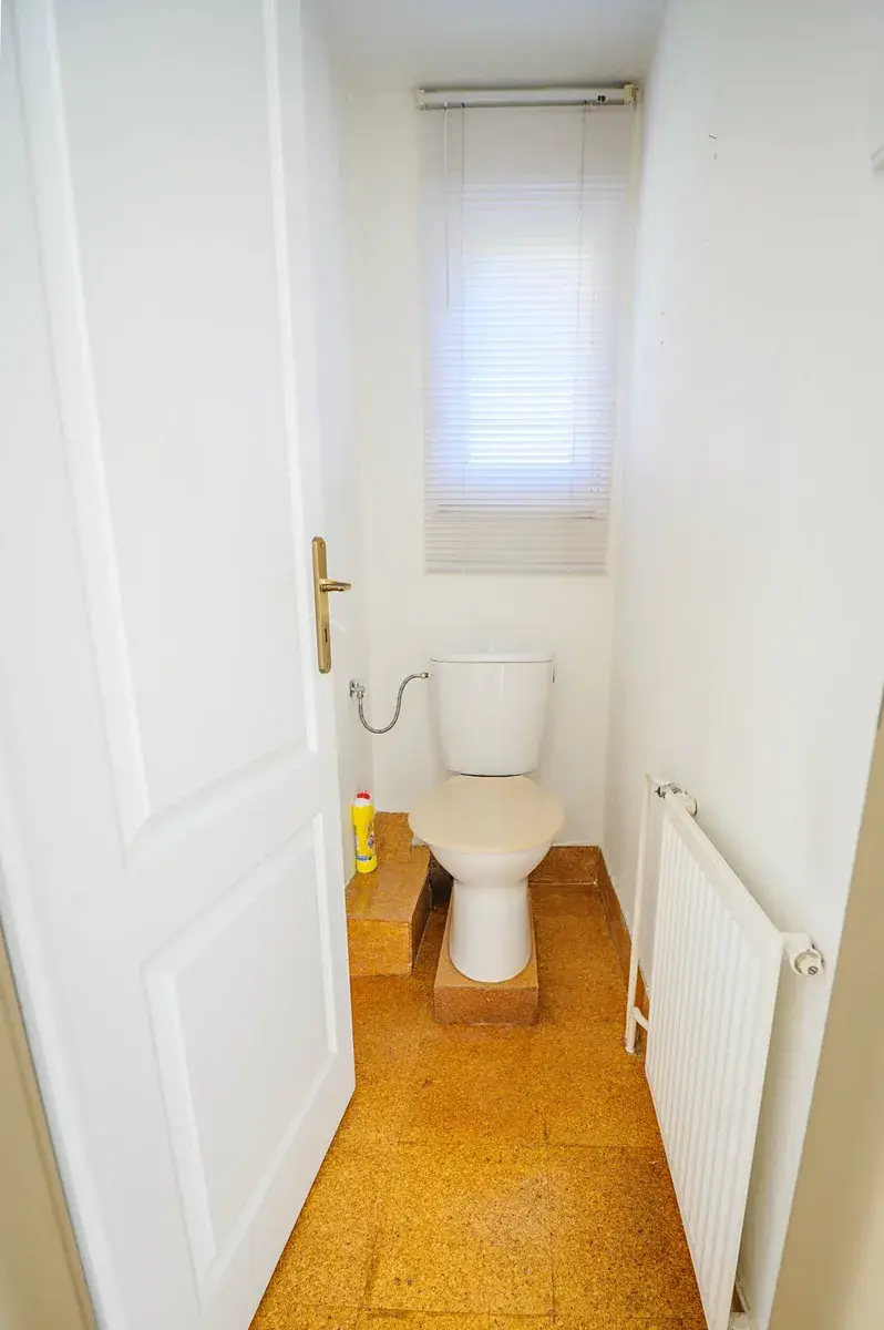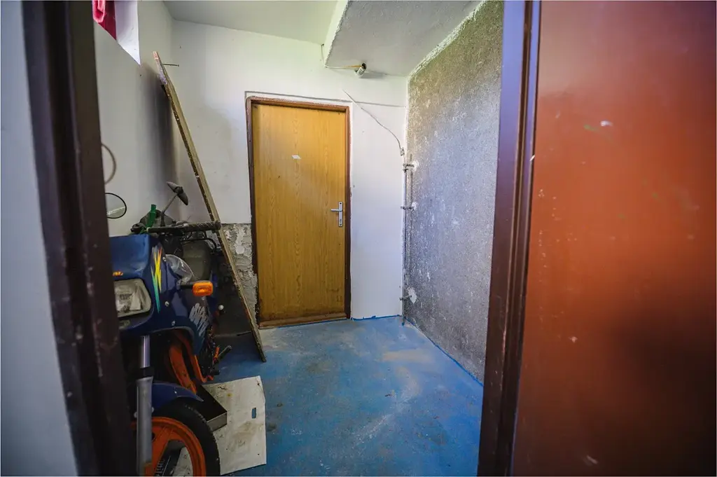 V přízemí rodinného domu se nachází prosklené zádveří, dále je zde předsíň, vstup do sklepa, a do technické místnosti. Za technickou místností je dílna a zahradní místnost. V technické místnosti jsou instalovány 2 plynové kotle pro jednotlivé bytové jednotky. Z předsíně pokračuje schodiště do patra, kde se dostanete do haly ze které jsou vstupy do 2 ložnic, koupelny, WC a do jídelny. Jídelna je propojena s obývacím pokojem. Z obývacího pokoje je vstup do další ložnice a z jídelny je vstup do kuchyně. Z obývacího pokoje se vchází na balkon, který je přes celou stěnu domu.