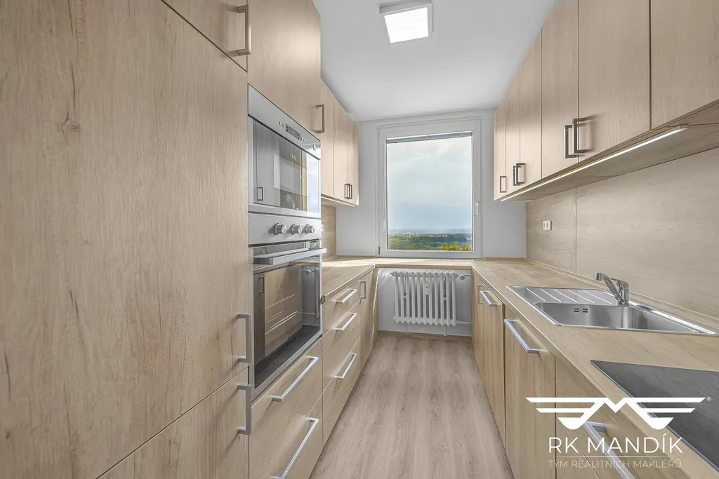 Nemovitost prošla kompletní rekonstrukcí a je připravena k nastěhování. Vstupní chodba disponuje vestavěnými skříněmi s úložným prostorem na míru – praktické zázemí ihned po vstupu do bytu. Byt je dispozičně řešen obývacím pokojem se vstupem na zasklenou lodžii, dvěma samostatnými ložnicemi a plně vybavenou kuchyní s novou kuchyňskou linkou. Ta zahrnuje varnou desku, digestoř s odvodem, myčku nádobí, mikrovlnnou troubu i elektrickou troubu. Koupelna je vybavena vanou a pračkou, WC je samostatné. V rámci rekonstrukce byla vyměněna podlaha, obložky dveří, provedena nová výmalba a kompletní elektroinstalace.