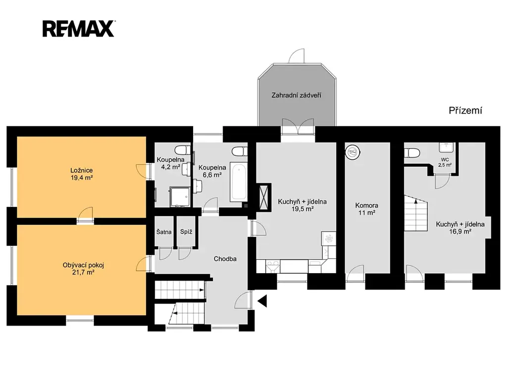 Celkově nemovitost nabízí až 10 obytných místností, více koupelen, dvě kuchyně a dostatek prostoru i pro větší rodinu.
