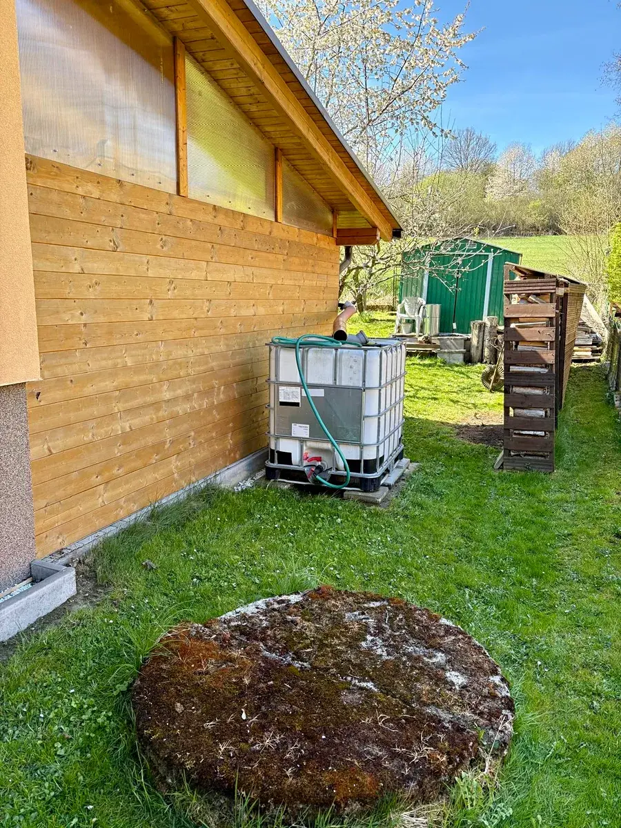 • Konstrukce: Zděná (cihla), zateplená (polystyren), částečně podsklepená – 2 menší místnosti, kde je rozvaděčová skříň, čerpadlo na vodu, bojler – ohřev vody.