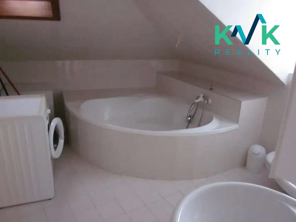 Nabízíme k pronájmu prostorný, velmi krásný a čistý byt 3 + 1 o velikosti 90 m² v Karlových Varech - Bohaticích. Byt je volný, pronájem možný ihned . Velmi udržovaný a světlý byt v podkroví ve 2. patře moderního domu s parkovacím místem v oploceném areálu domu, s posuvnou bránou na dálkové ovládání. Ve velké a vkusně řešené kuchyni se nachází plně vybavená kuchyňská linka, včetně nádobí, porcelánu, skla, a příborů. Součástí linky jsou vestavěné spotřebiče, lednice, mrazák, sporák se sklokeramickou deskou, mikrovlnka, varná konvice. Dále je součástí bytu prostorná koupelna s podlahovým topením, rohovou vanou, umyvadlem a WC. Zde je položena dlažba. V obývacím pokoji je sedačka, stolek a rustikalové skříně. V ložnici je dvojlůžko, noční stolky a úložné skříně. Pokojík je malý, specifický, jeho součástí je malá koupelna, která obsahuje WC, sprchový kout a umyvadélko. Pokojík má psací stůl a rozkládací pohovku. Byt je plně vybaven. Mimo televize. Je zde připojení na Wifi. Vytápění a ohřev vody na topení zajišťuje plynová kotelna v domě. Vhodný pro 2 dospělé osoby a jedno odrostlejší dítě. Požadované měsíční nájemné činí 10 500,- Kč + zálohy na služby, vč. záloh na elektrickou energii a plyn jsou 6 500,- Kč , v ceně služeb je poskytováno parkovací místo přímo u domu, uvnitř oploceného areálu, odvoz odpadu, úklid společných prostor, správa budovy atd.. Vratná kauce ve výši 2 měsíčních nájmů ( 21 000,- Kč ) + poplatek RK ve výši 10 000,- Kč. K dispozici - volný od 1.5.2026.