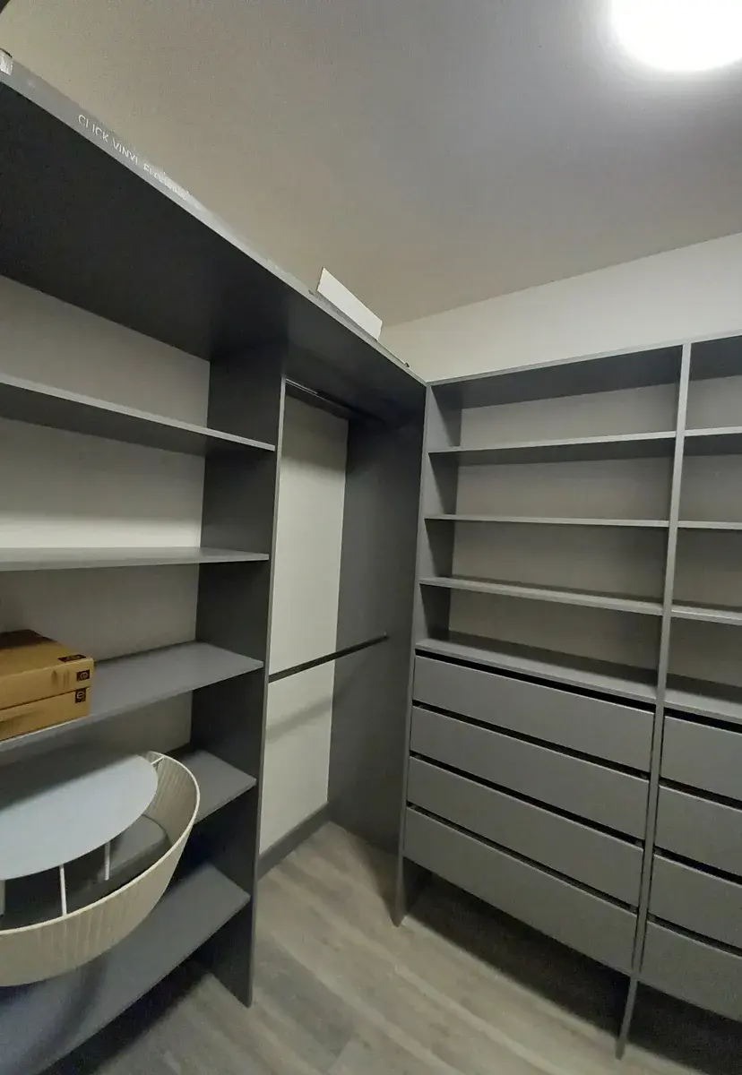 • Po pravé straně od vchodových dveří do bytu můžete vejít do prostorné komory využívané jako šatna (5,30 m2) ve které oceníte velké zrcadlo umístěné na vnitřní straně dveří.