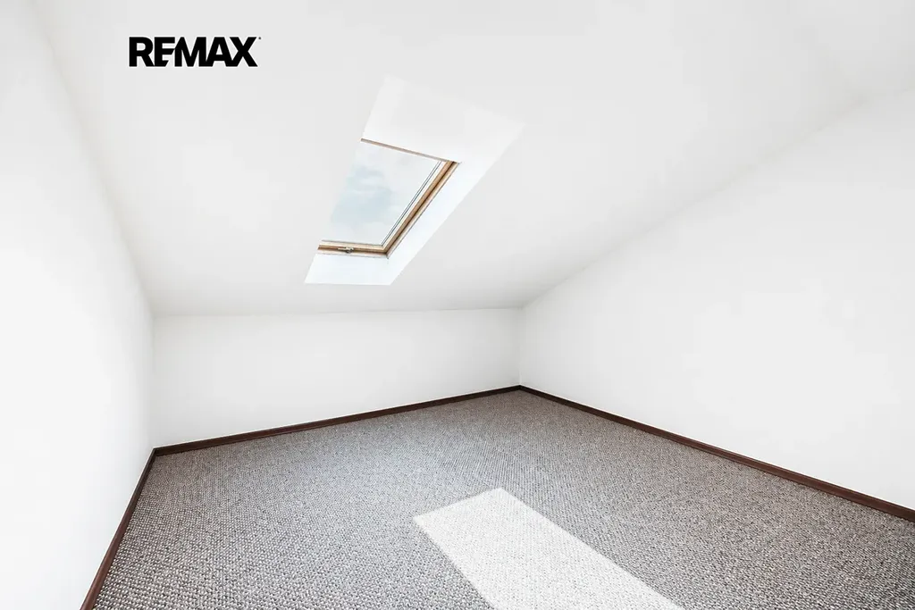 Na stejném podlaží se nachází také komfortní ložnice, samostatná šatna, koupelna s vanou i sprchovým koutem a toaletou, předsíň, praktické úložné prostory a další pokoj, který lze využít jako dětský pokoj, pracovnu nebo pokoj pro hosty.