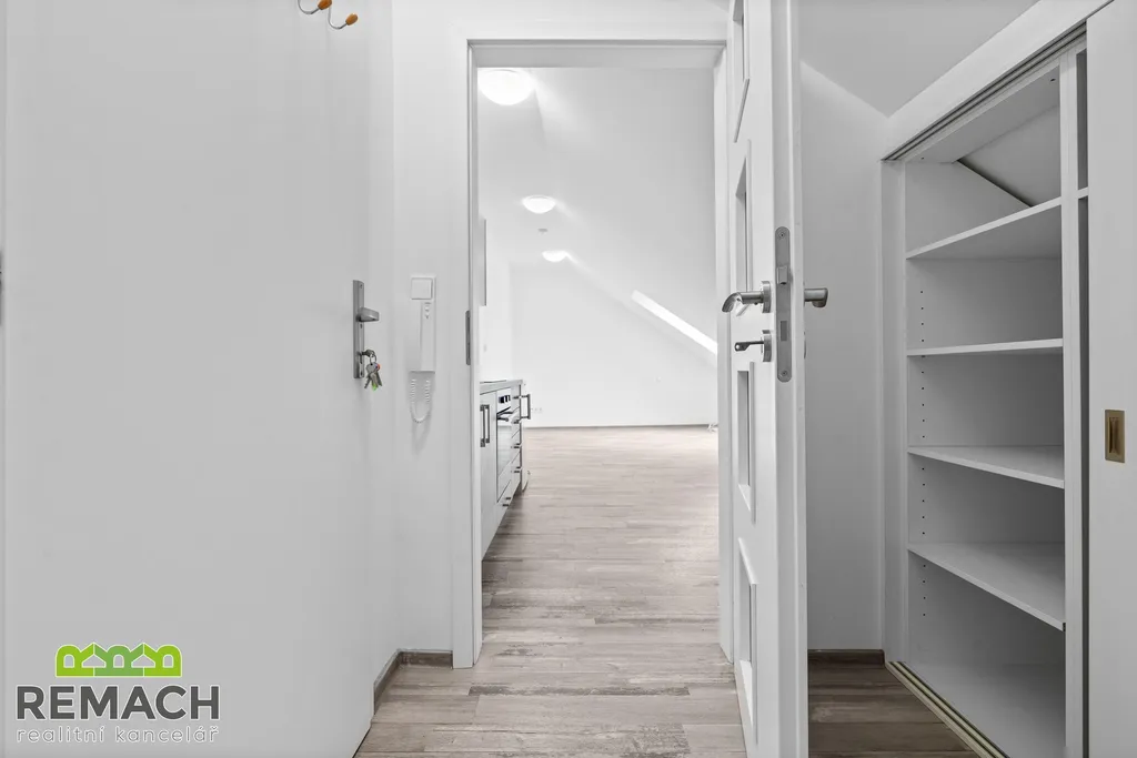 Zrekonstruovaný podkrovní byt o dispozici 1+kk, nacházející se přímo v centru Uherského Hradiště. Byt je vybaven kuchyňskou linkou s vestavěnými spotřebiči, klimatizací, v koupelně přípojky na pračku, sprchový kout a elektrický bojler. Předsíň s úložným prostorem. K nastěhování ihned. K ceně nájmu se připočítávají energie včetně internetu ve výši 2.000,- Kč. Byt je volný od 1.4.2026.