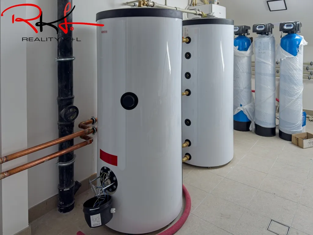 Vytápění je řešeno ústředně, centrálním tepelným čerpadlem. Ohřev teplé vody je rovněž zajištěn centrálně tepelným čerpadlem. Napojení na obecní vodovod a kanalizaci je samozřejmostí. Byt není bezbariérový.