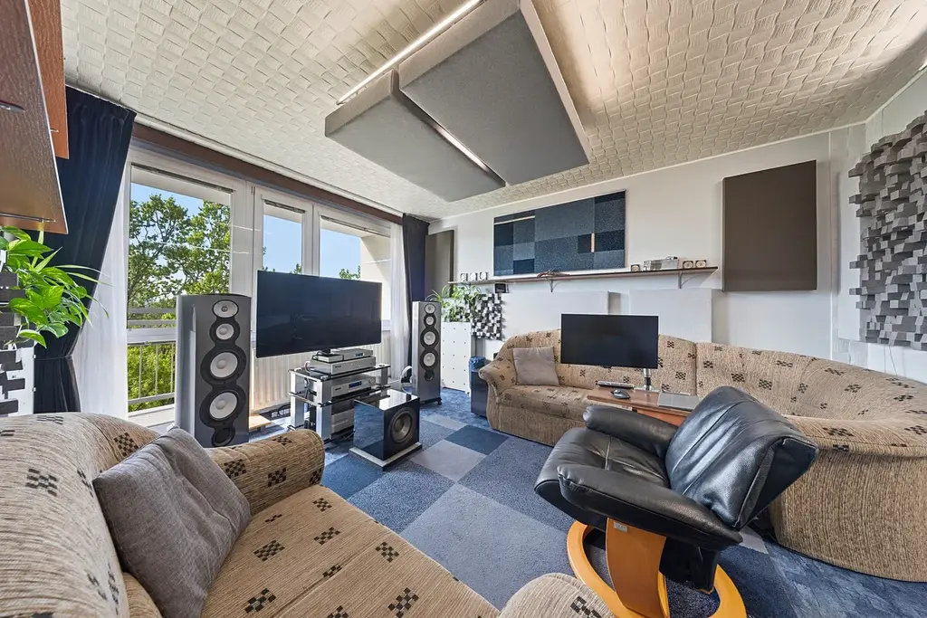 Jedná se o poslední patro, které přináší klid bez dupání nad hlavou, více soukromí a krásné výhledy do okolí. Díky rekonstrukci střechy a přesahu zastřešení lodžie se byt v létě nepřehřívá a v zimě naopak využívá nízké slunce k přirozenému ohřevu interiéru.