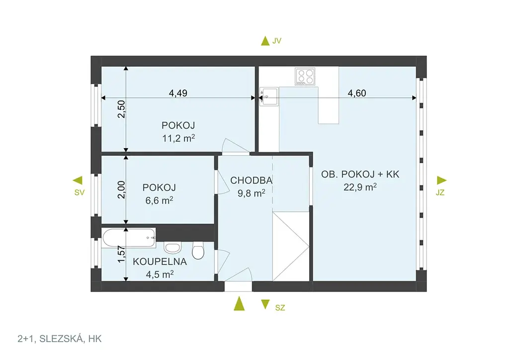 Nabízíme k prodeji byt o dispozici 3+kk se sklepní kójí v Hradci Králové, v lokalitě Slezské Předměstí, ulice Slezská.