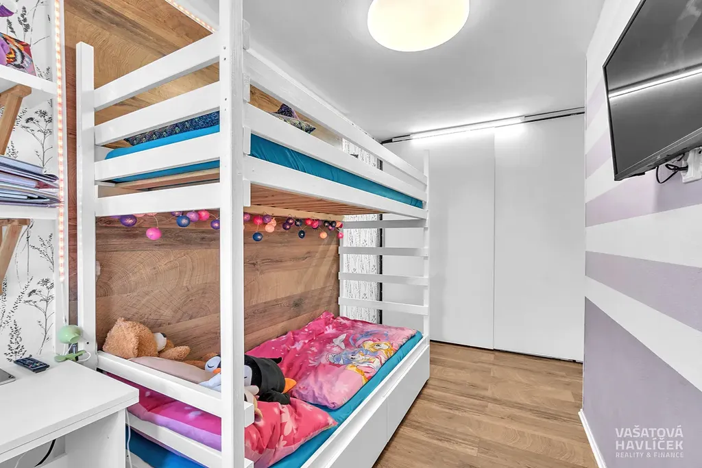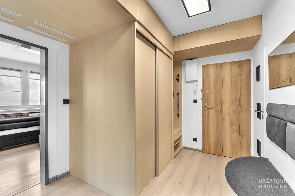 V bytě zůstává kuchyňská linka na míru s vestavěnými spotřebiči (nová digestoř a varná deska z roku 2023). Vstup do bytu je přes kvalitní bezpečnostní dveře pořízené v roce 2025.
