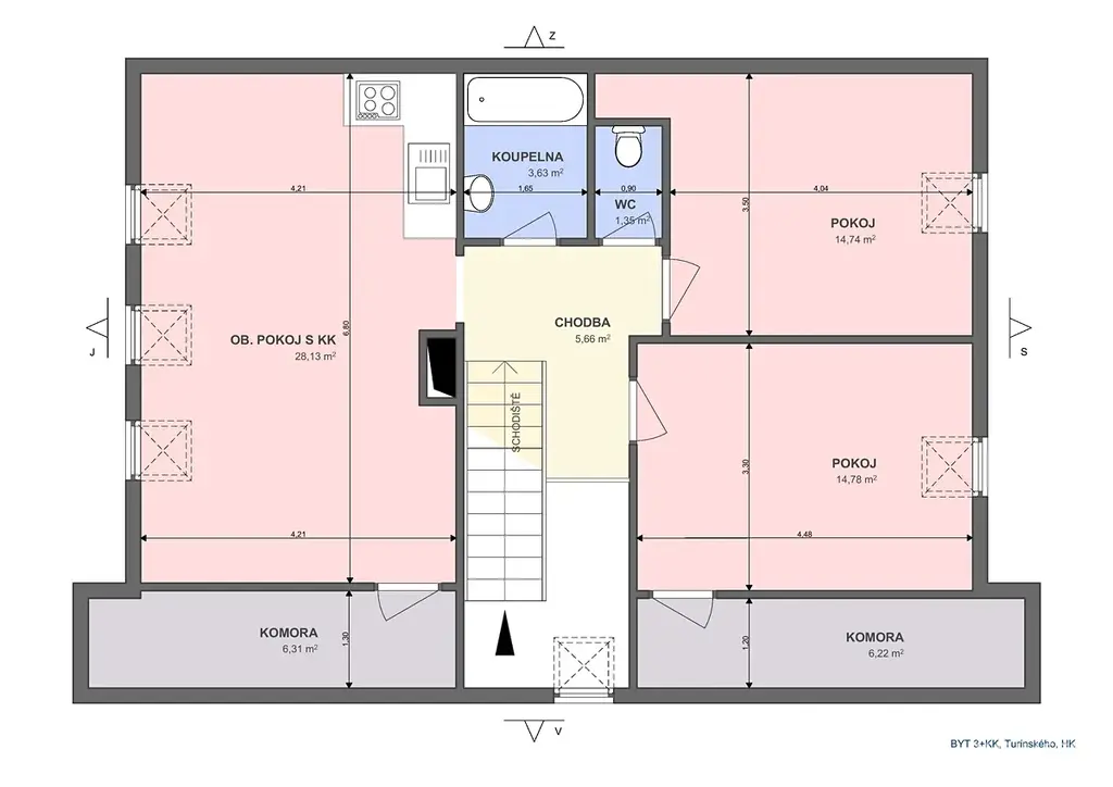 Pronájem bytu 3+kk, Hradec Králové, Turinského, 78 m2