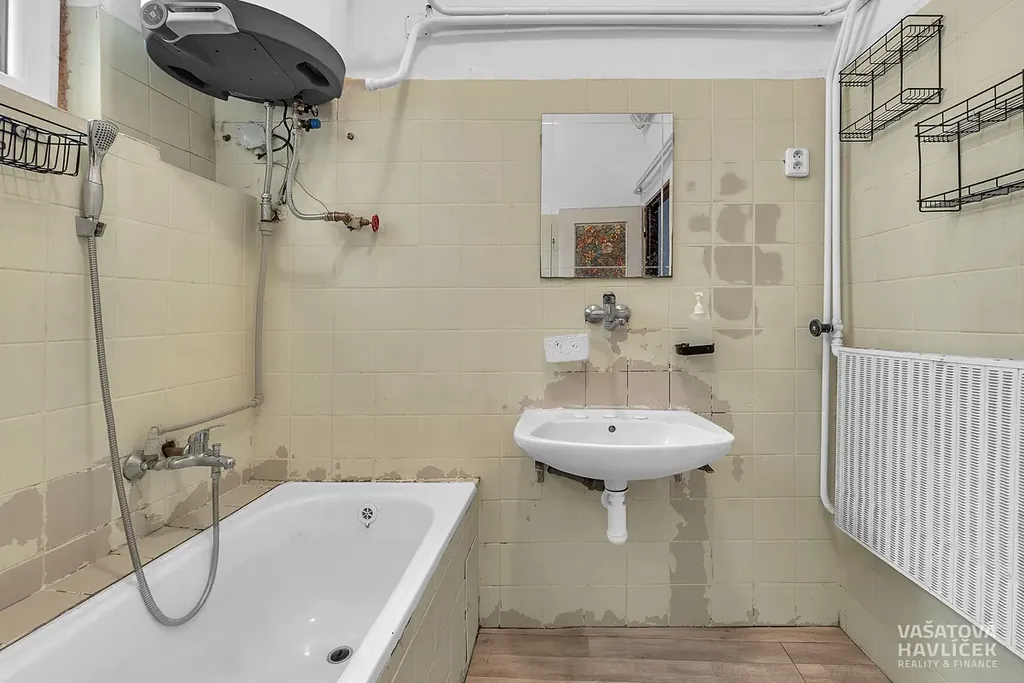 Byt 3+1 prošel částečnou renovací (rozvody elektřiny jsou provedeny v mědi, plastová okna). Je orientovaný na J a V stranu (do Jungmannovy ulice a do Havlíčkovy ulice). Byt je vytápěn plynovým kotlem, voda je ohřívána el. bojlerem. Na podlaze v bytě jsou parkety, na nich jsou položeny koberce, v kuchyni linoleum, v chodbě leštěná žula.