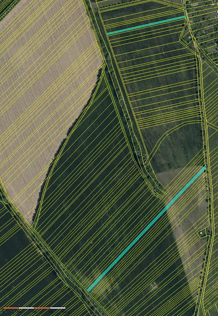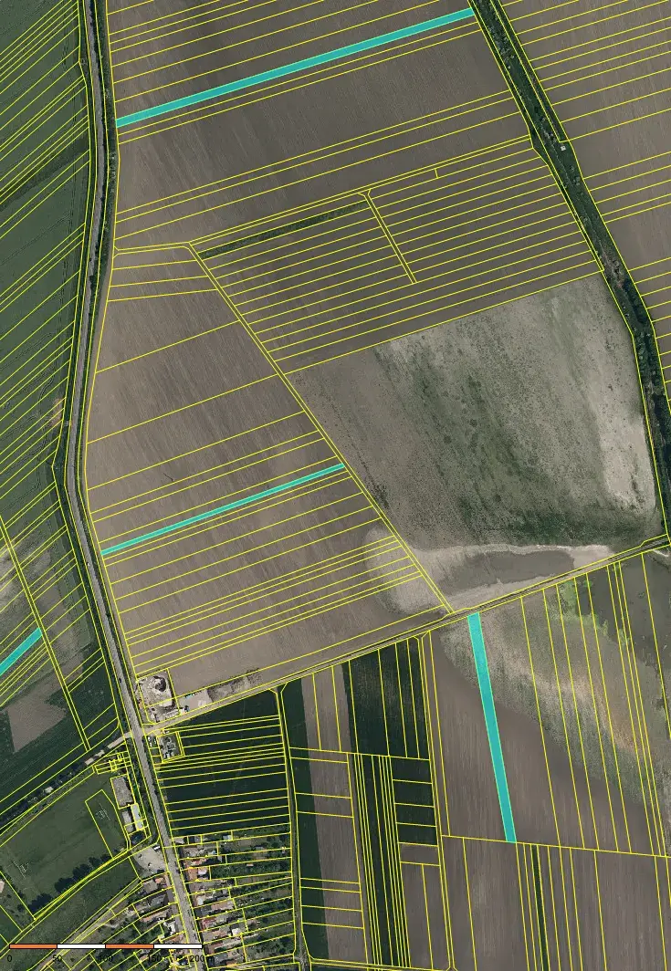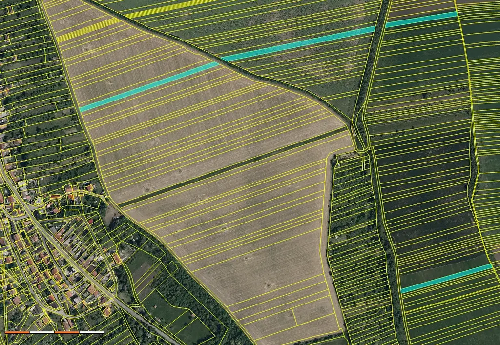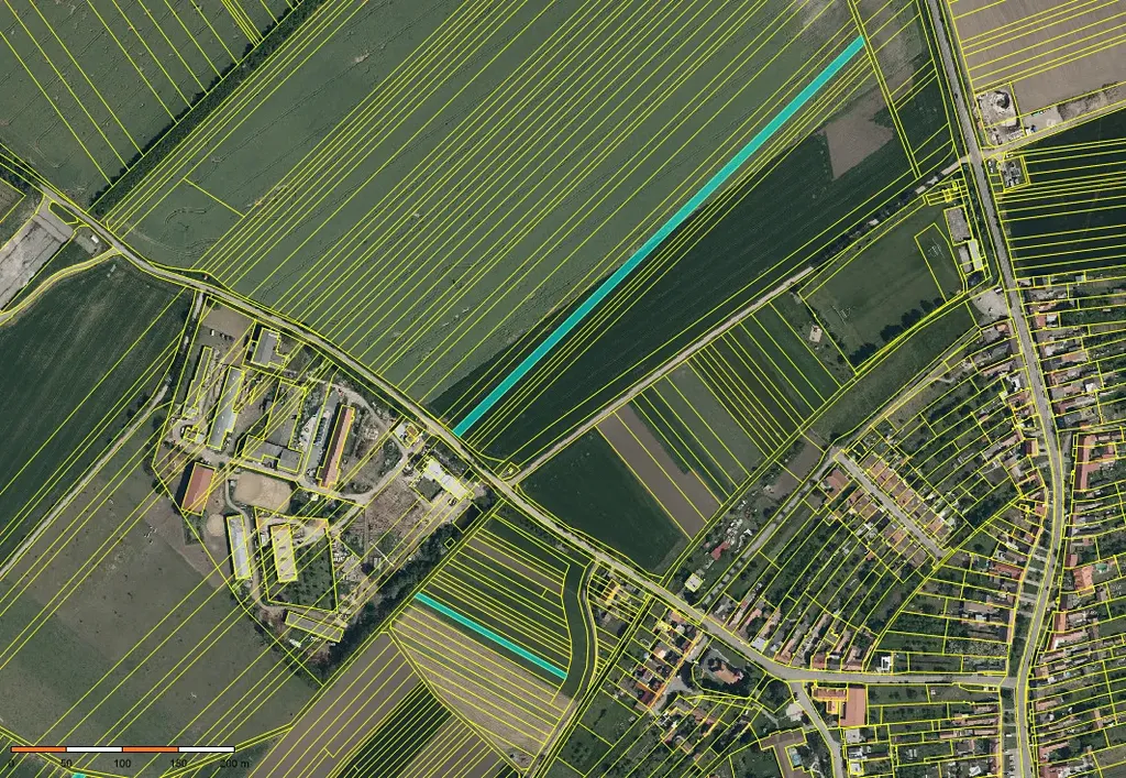 pozemky tvoří více parcel rozmístěných v rámci katastru, ve vzájemné blízkosti u přístupových cest