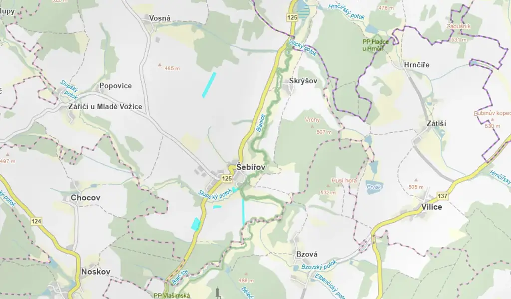 Lokalita: Část pozemků se nachází v bezprostřední blízkosti obce Šebířov, což zvyšuje jejich budoucí potenciál. Další část je situována přímo u hlavní silnice, což zaručuje dostupnost.