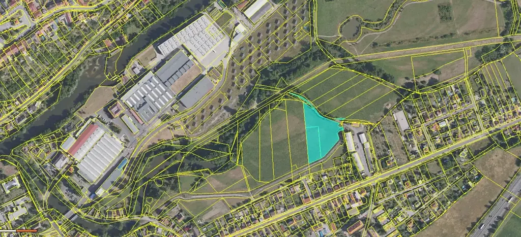 Prodávané parcely číslo 303/1, 303/29, 1158, 1161 vedené na listu vlastnictví 2770 v katastrálním území Nové Benátky mají celkovou prodejní výměru 7834 m2.