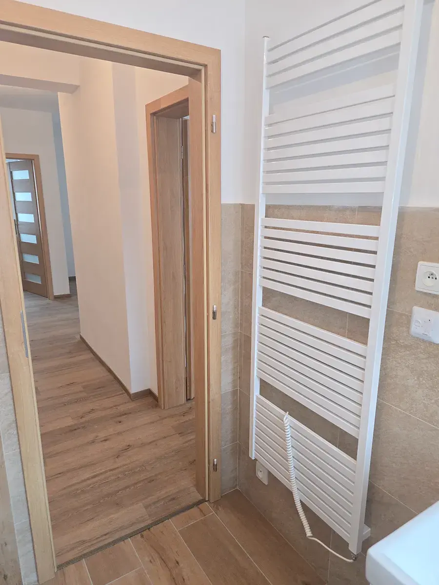 Byty procházejí poctivou a nákladnou rekonstrukci, plastova okna trojskla,, žaluzie,rozvody - voda,kanalizace, elektro, omítky, podlahové izolací - tepelná, hydroizolace, plovoucí podlahy, nové topení - elektrické podlahové - regulace každé místnosti, , obklady - velkoformátové, nová sanita / sprchový kout 90cm /, závěsné WC - geberit, otopný žebřík . V bytě podlahové topení - velice příjemné, odpadají radiatory a je i více místa.