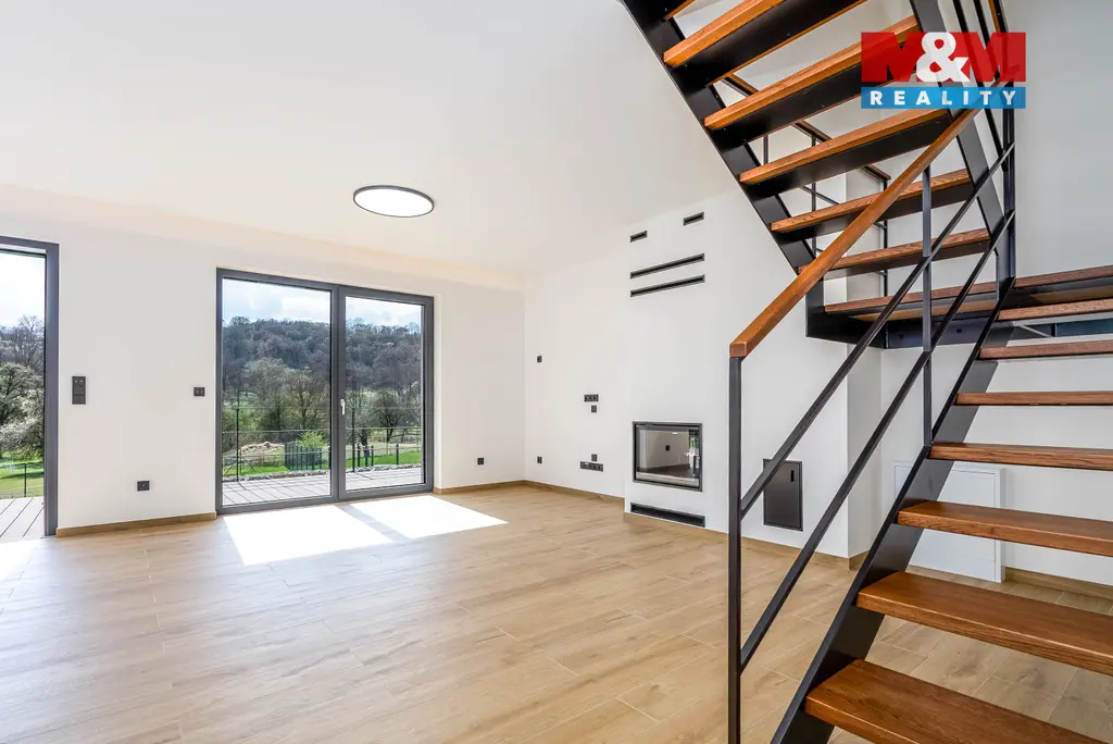 Nabízíme ke koupi novostavbu rodinného řadového domu, o dispozici 4+kk v klidné a vyhledávané lokalitě Beroun–Hostim, která spojuje pohodové bydlení v přírodě s rychlou dostupností do Prahy. Dům o obytné ploše 144 m² disponuje terasou (23 m²), půdou (24 m²), garáží (36 m² se skladem 29 m²) a zahradou o velikosti 470 m². Nemovitost se nachází v malebném prostředí Českého krasu, nedaleko říčky Loděnice, s množstvím turistických tras a výletních míst včetně Karlštejna či Svatého Jana pod Skalou. Do centra Berouna je to pouhých 5 km a do Prahy se dostanete po dálnici D5 za cca 15 minut. Dům je postaven z kvalitních materiálů s důrazem na detail, je energeticky úsporný (třída B) a vytápěn tepelným čerpadlem. Samozřejmostí jsou plast-hliníková okna s trojskly, venkovní žaluzie, moderní koupelny či designové prvky interiéru. Ideální volba pro ty, kteří hledají klid, prostor a kvalitní bydlení v dosahu města. Vhodné i jako investice.Pro více informací nebo domluvení prohlídky volejte makléři.