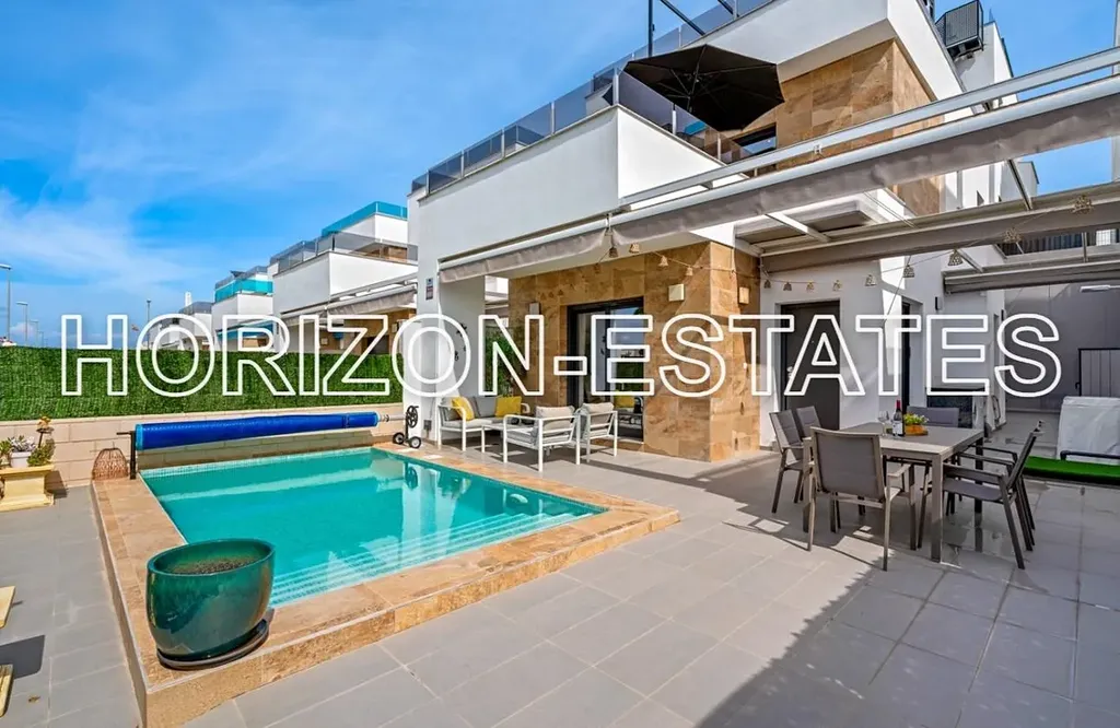 Dům nabízí velkou střešní panoramatickou relaxační terasu, která představuje ideální prostor pro odpočinek s výhledem do okolí. Nemovitost je situována ve velice udržovaném rezidenčním komplexu v malebné vesničce Benijófar (oblast Benimar), která je obklopena krásnou přírodou. Lokalita nabízí klidné bydlení s výbornou dostupností k pobřeží velká písečná pláž v Guardamar del Segura je vzdálena přibližně 12 km.