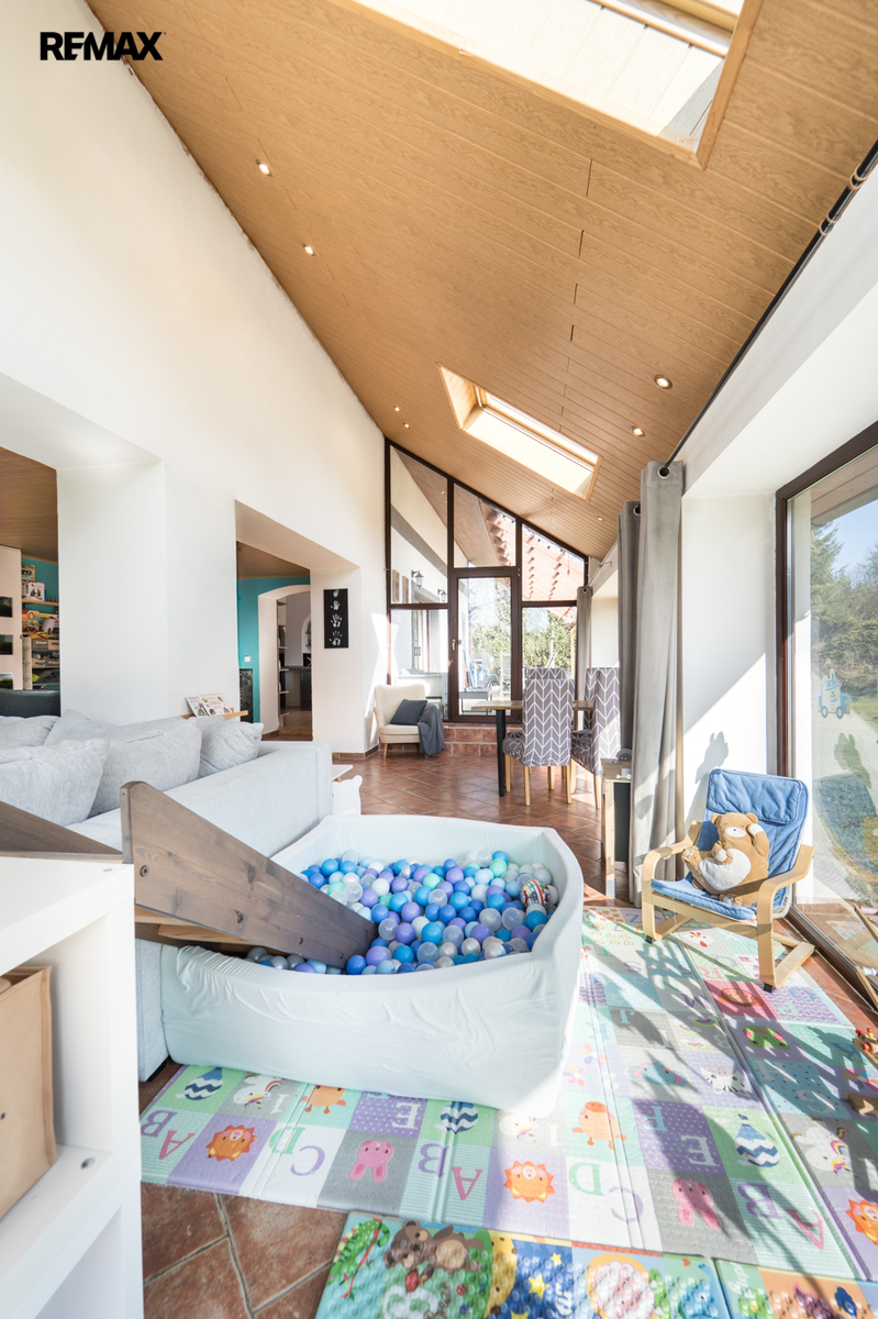 Na první pohled vás zaujme velkorysý pozemek (4209 m2), otevřený prostor a soukromí, které dnes už není samozřejmostí. Dům je situovaný v klidné části obce.