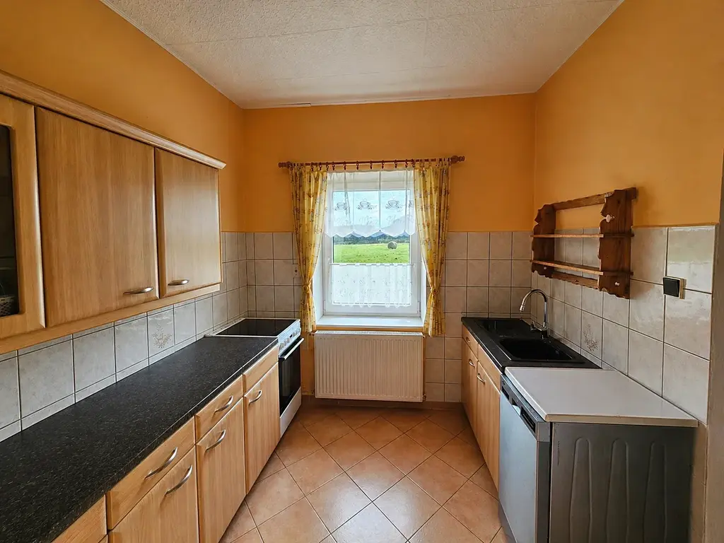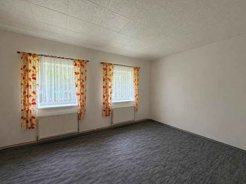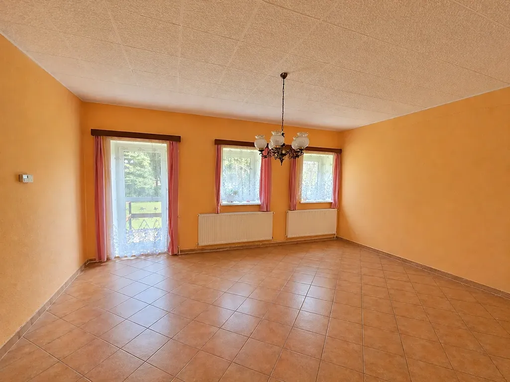 Dům je v udržovaném, obyvatelném stavu, aktuálně nabízí dispozici 3+kk a spoustu skladových prostorů, které je možné upravit na další obytné místnosti. Pokud toužíte po moderním bydlení, tak je potřeba počítat s budoucí investicí. Dům je připojen na elektřinu a obecní vodovod. Odpady jsou svedeny do septiku. Vytápění probíhá přes kotel na tuhá paliva. Ohřev vody přes el. bojler. Všechna okna jsou plastová s dvojsklem.