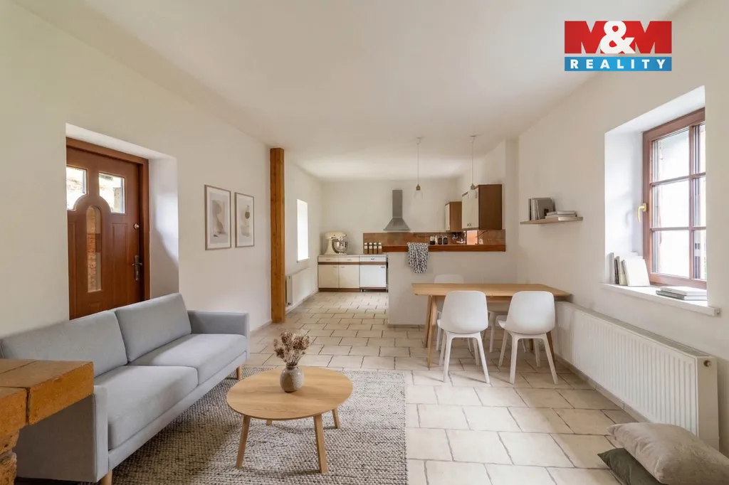 Dispozice 3+1 ve dvou podlažích se dvěma koupelnami zajišťuje komfortní bydlení, s možností vybudování druhé kuchyně v patře. Obývací pokoj s krbem vytváří příjemnou atmosféru domova. Nemovitost prošla částečnou rekonstrukcí – zateplení, výměna oken a nová střecha včetně krovů.