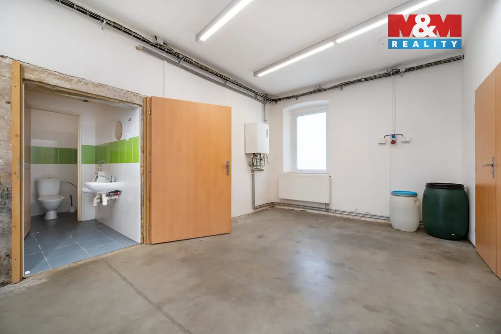 Díky kompaktní výměře nabízí efektivně využitelný prostor. Objekt má vlastní vstup a je dobře přístupný i pro zásobování. K dispozici jsou elektricky ovládaná vrata o rozměrech cca 2,90 x 2,60 m, což usnadňuje manipulaci s materiálem i technikou.