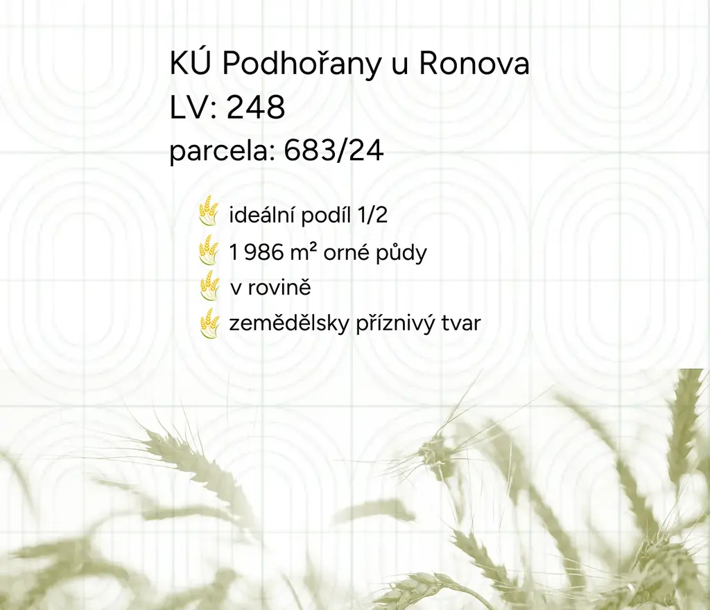 Nenechte si ujít nejnovější nabídky prodeje podílu polí v Podhořanech u Ronova.