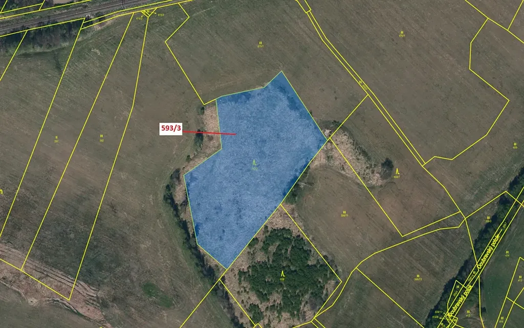 Lesní pozemek o výměře 9119 m2, parcelní číslo 593/3, podíl 1/1, katastrální území Horní Vilímeč, obec Počátky, obec s rozšířenou působností Pelhřimov, okres Pelhřimov, Kraj Vysočina.