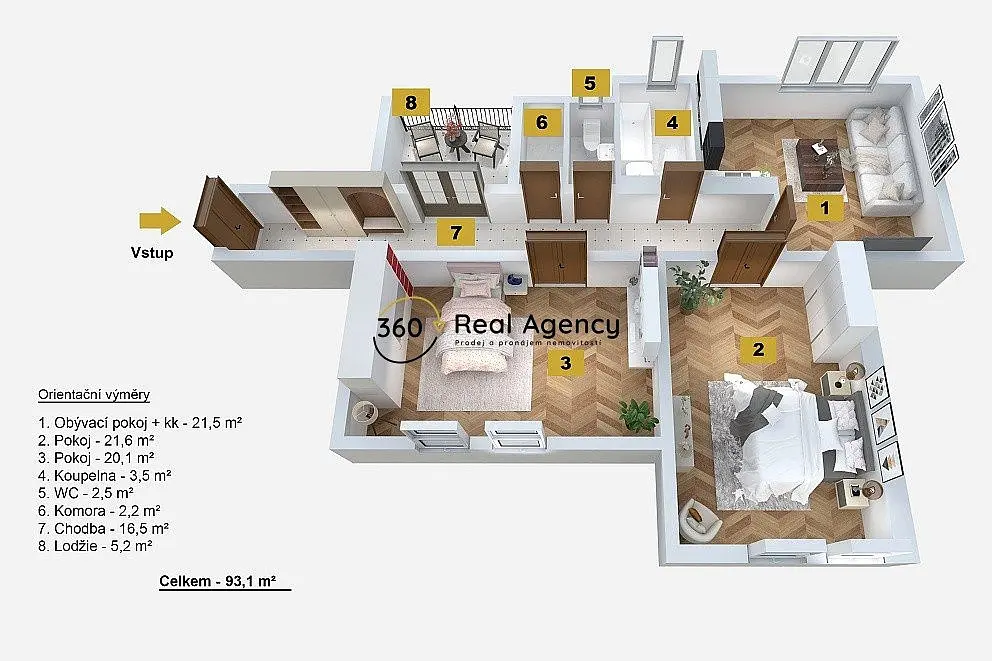 Dispozice zahrnuje obývací pokoj, ložnici, samostatnou kuchyň s jídelnou, komoru, koupelnu, samostatné WC a lodžii orientovanou do klidného vnitrobloku.