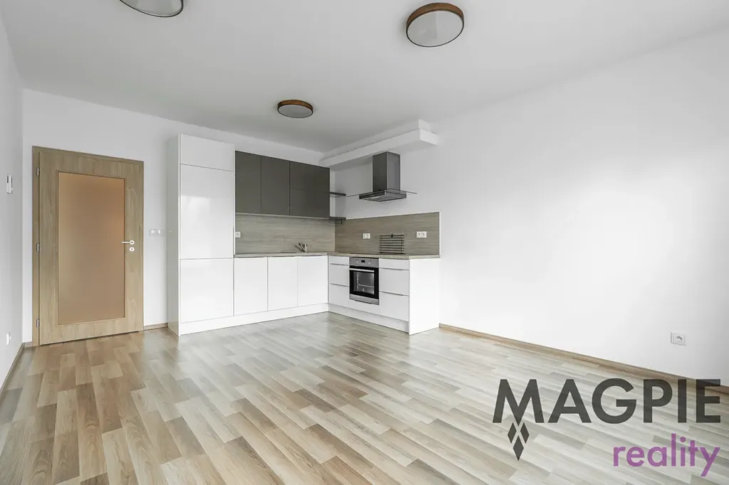 Moderně řešený byt se sestává ze zádveří (4,6 m2), z něhož vstupujeme do koupelny s WC (4,4 m2) a praktické komory (2,3 m2), kde je umístěna příprava na pračku a případně sušičku. Ze zádveří pak projdeme do obou obytných místností. Obývací pokoj (20,4m2) je vybaven moderní kuchyní na míru vybavenou značkovými spotřebiči. Výhodou jsou velká okna a vstup na lodžii. Druhou obytnou místností je ložnice (13,9m2) s dalším vstupem na lodžii, která poskytne výhled do zeleně. V ložnici je oproti fotografiím umístěna na míru vyhotovená praktická vestavěná skříň.