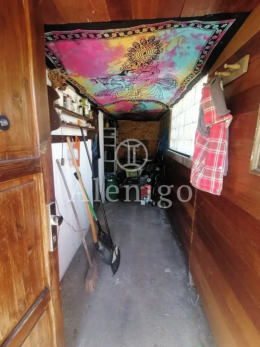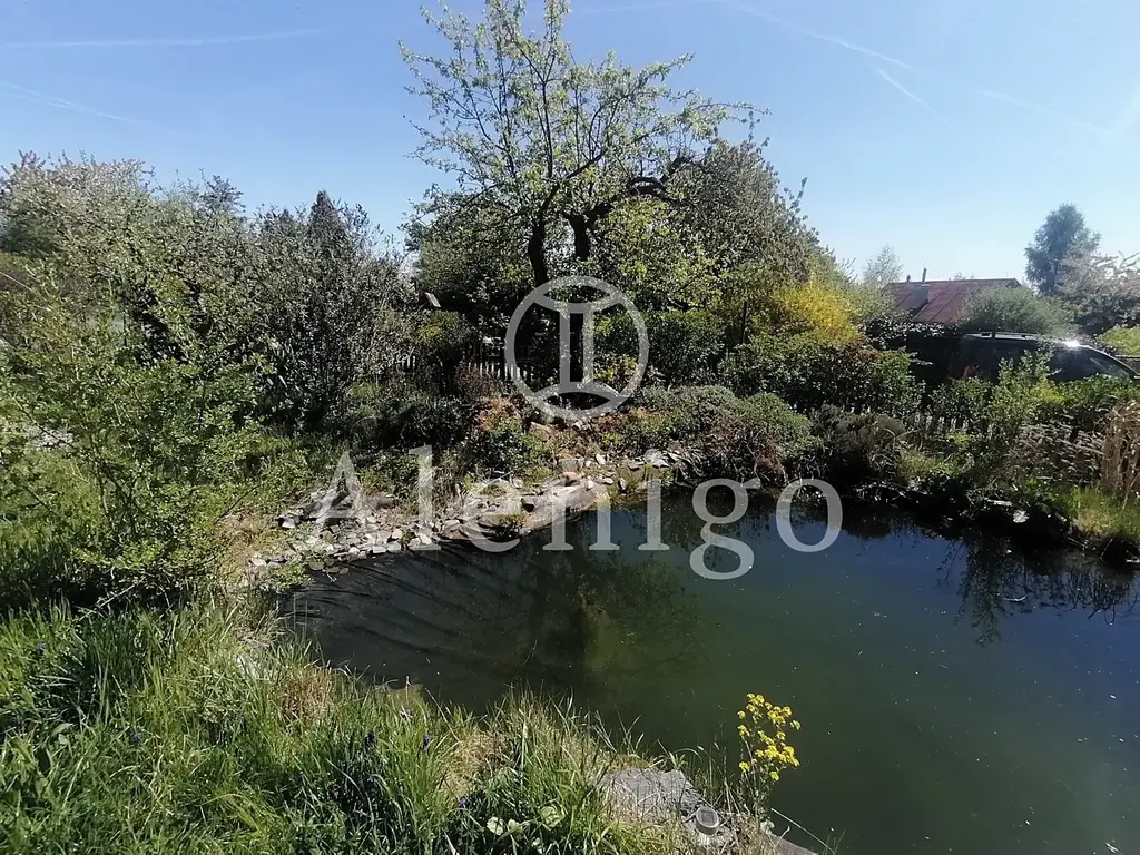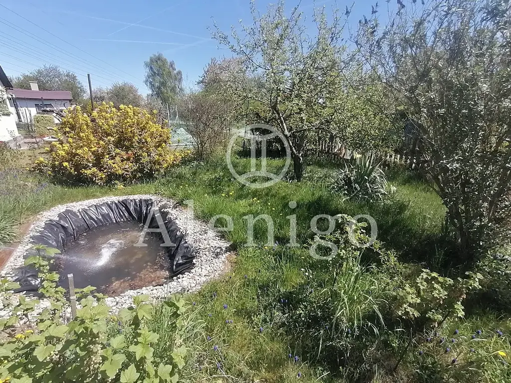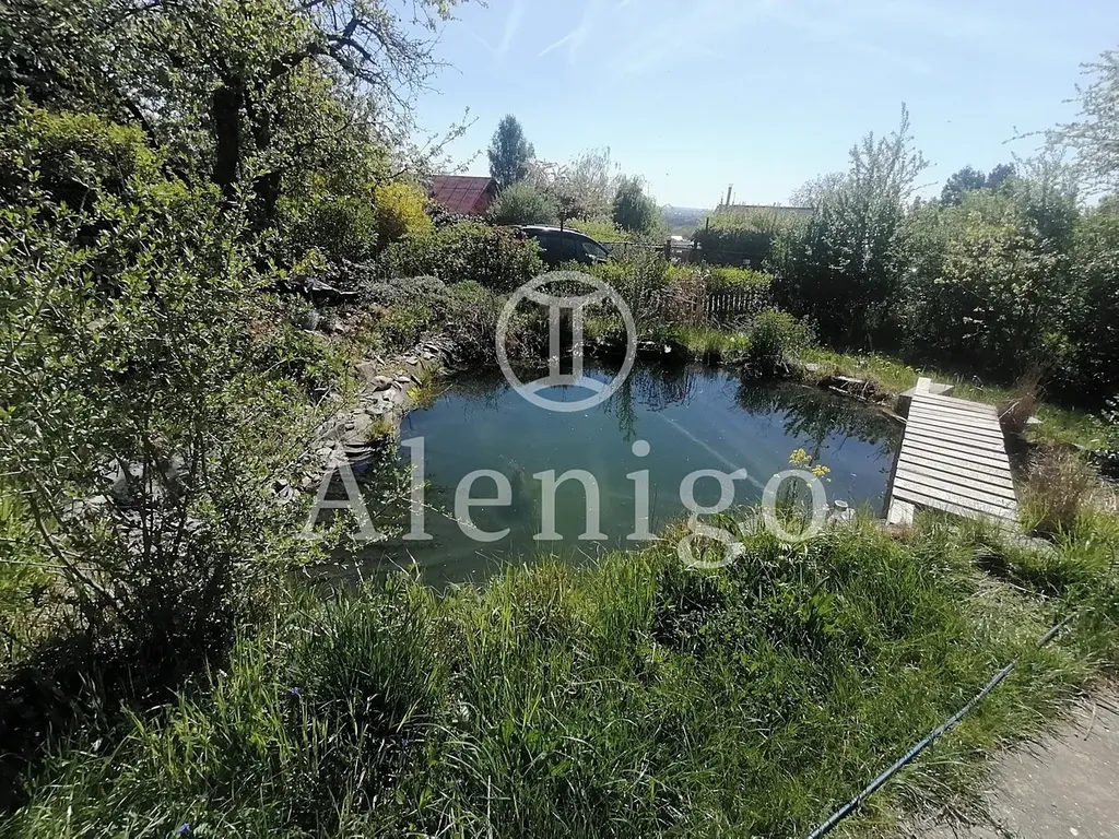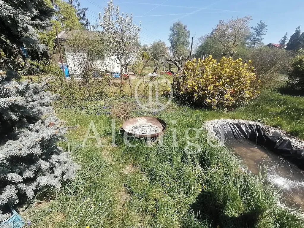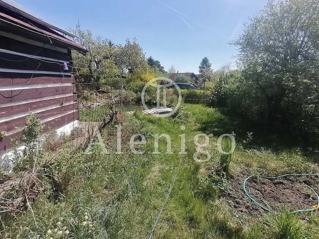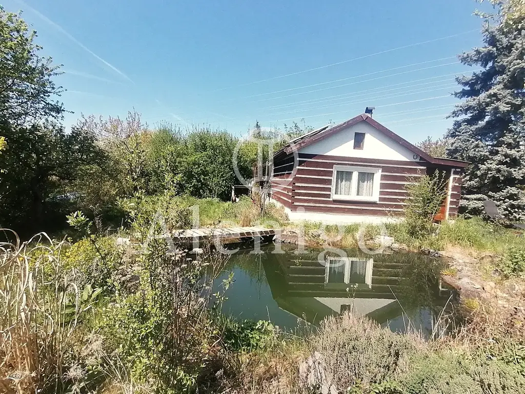 Chata stojí na pronajatém pozemku a je obklopena krásnou přírodní zahradou s okrasným jezírkem, vzrostlou zelení a květinami, které vytvářejí jedinečnou atmosféru po celý rok.