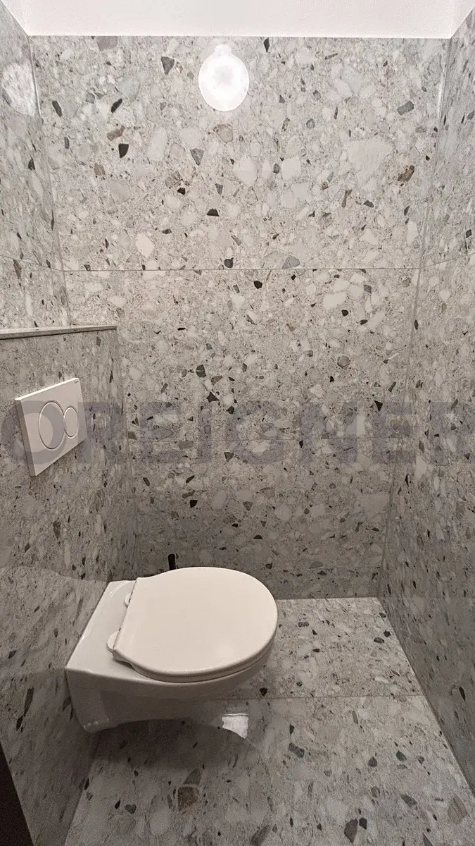 Koupelna se sprchovým koutem a novou pračkou, oddělený záchodElektrické topení
