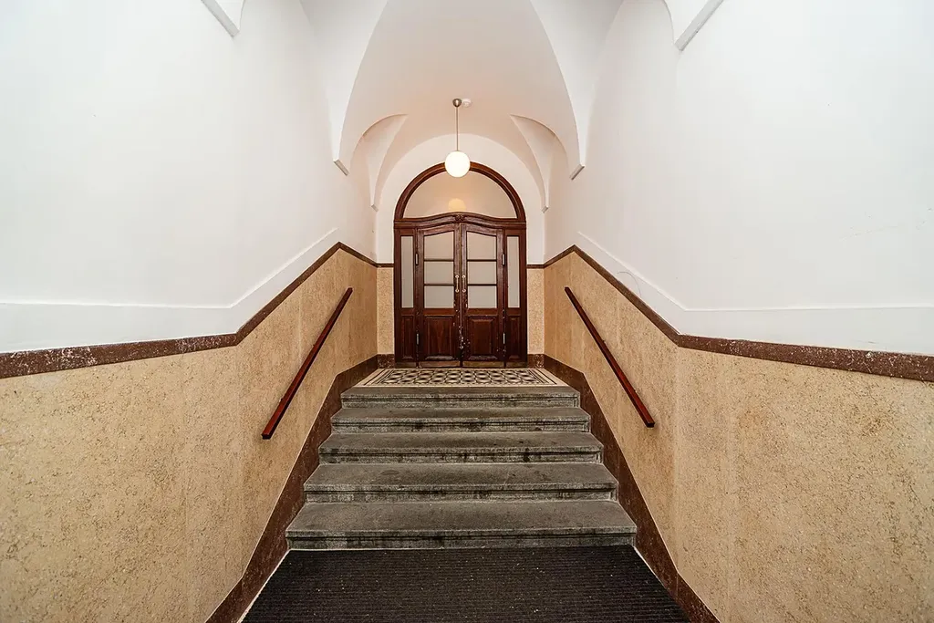 Byt se nachází ve 3. nadzemním podlaží krásného činžovního domu s typickou architekturou staré Prahy. Společné prostory domu zaujmou na první pohled - dominuje jim impozantní schodiště, jehož stěny zdobí řezbářská díla. Atmosféra historické Prahy je zde cítit na každém kroku.