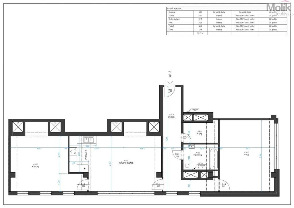 Nabízíme k pronájmu atraktivní, nově zrekonstruovaný byt o dispozici 3+kk a celkové výměře 103 m², situovaný v centru města Chomutov.