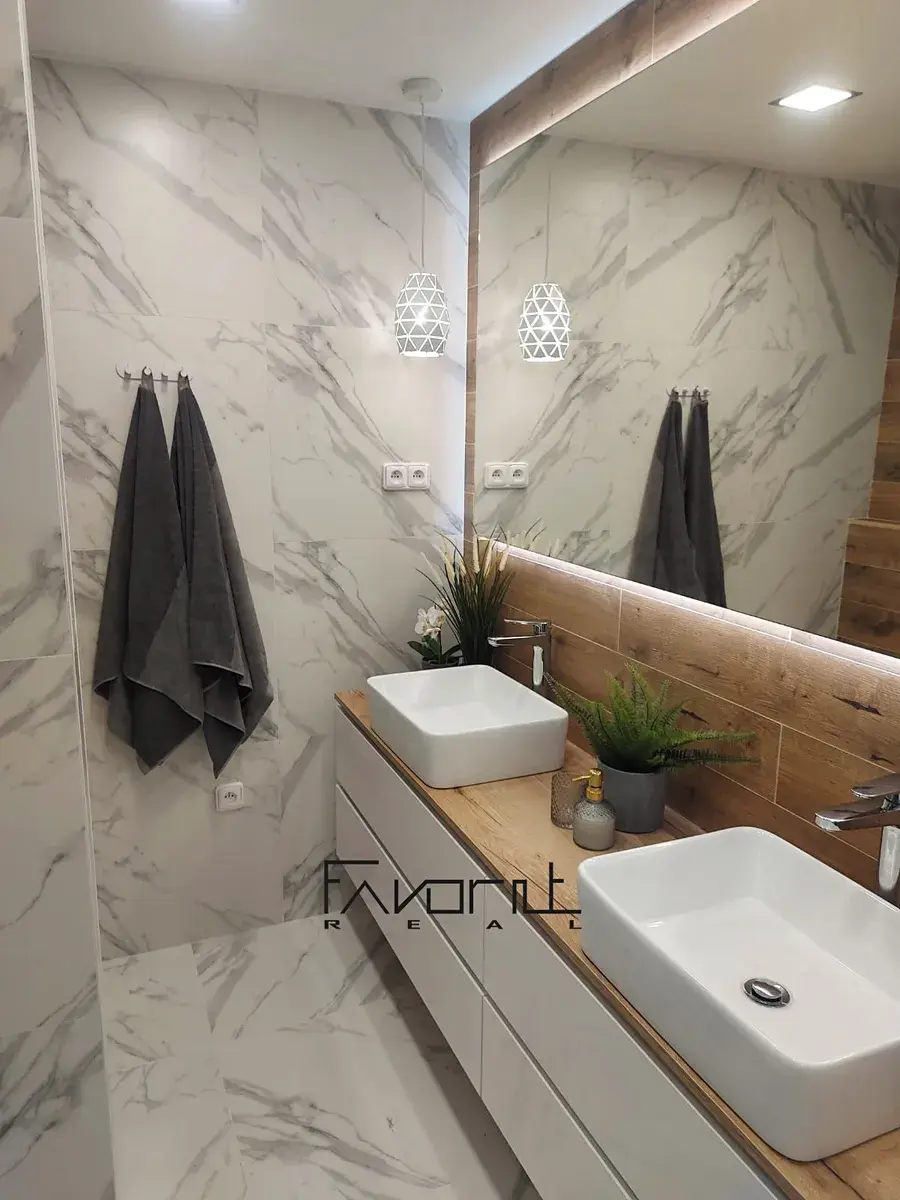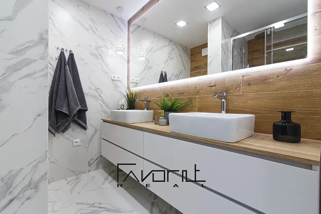 Byt je kompletně nový s nadstandardním designem a prostornou koupelnou, vestavnou skříní v chodbě. V domě po kompletní revitalizaci (fasáda, zateplení, dveře, domovní telefon, schránky, vchodové dveře, výtah).