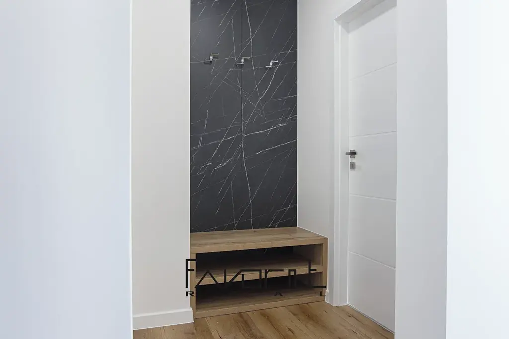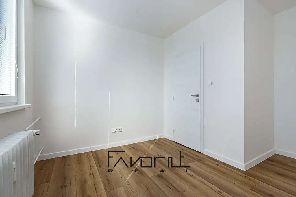 Nivelace podlah před položením plovoucí podlahy (srovnání). Na podlahách jsou zátěžové plovoucí podlahy. Nové interiérové a vstupní dveře včetně obložek, vypínače a zásuvky. Nové kvalitní omítky. Celý byt je laděný do jednoho barevného tónu.