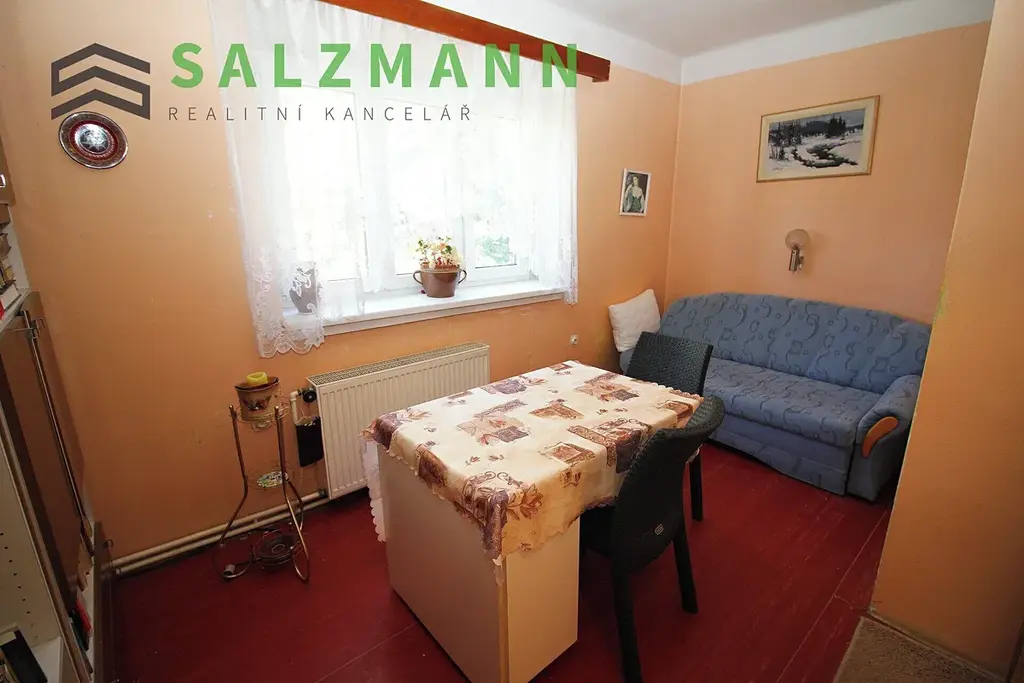 - kuchyně – kuchyňská linka, lednice, sporák s troubou, jídelní stůl a židle