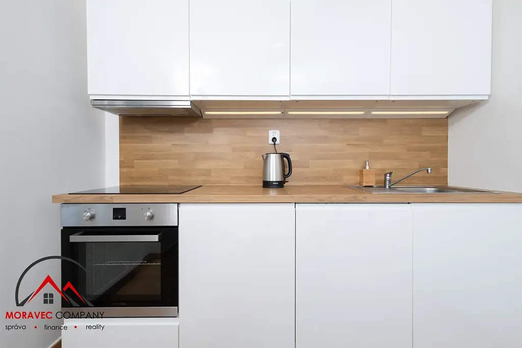 Byt je plně vybaven – nechybí nábytek, spotřebiče i nádobí. Stačí si jen přinést osobní věci a můžete bydlet!