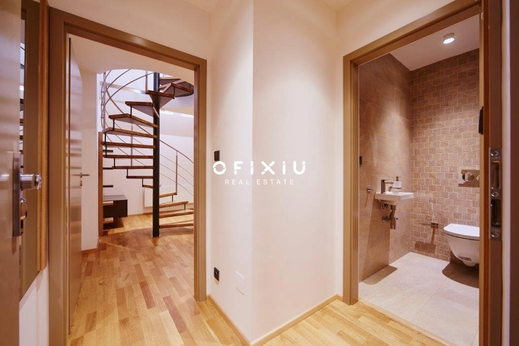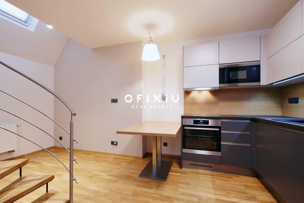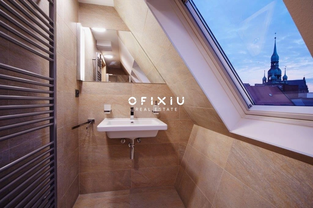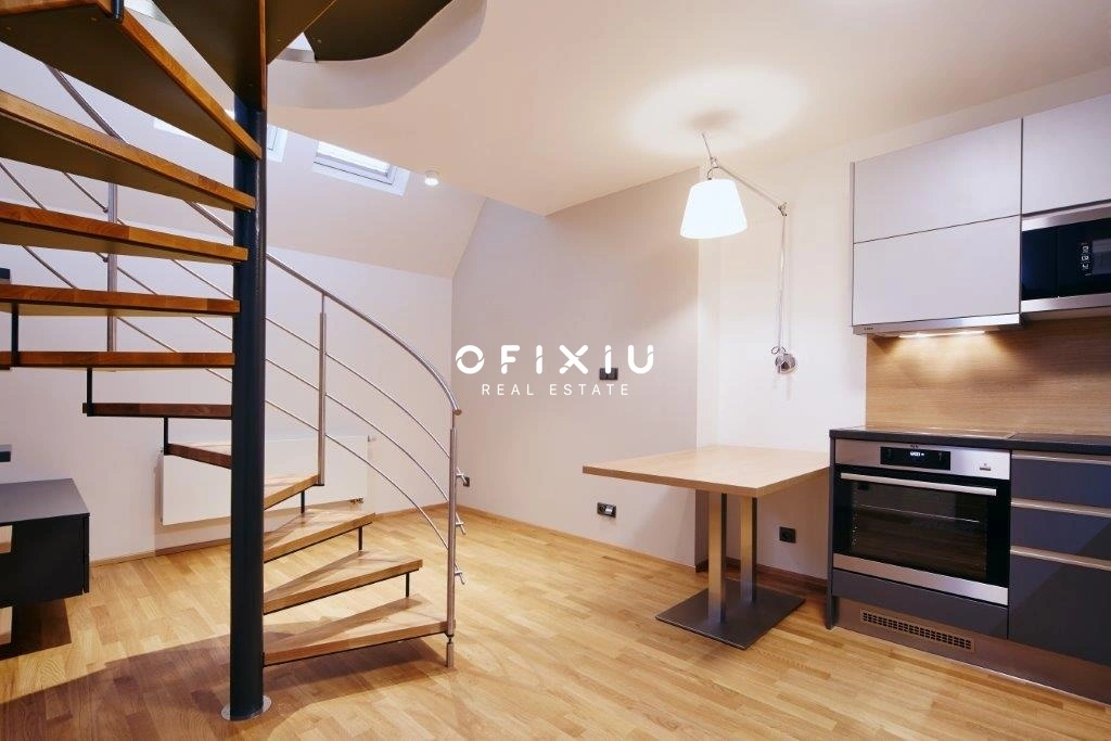 Jedná se o moderní mezonetový byt v šestém nadzemním podlaží historické budovy v centru Brna.