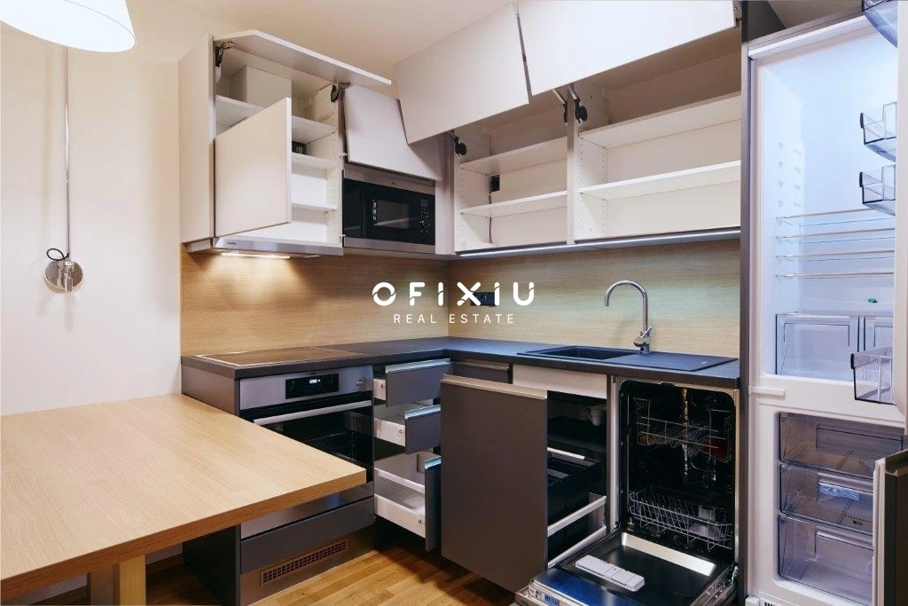 Rozloha bytu je 53,2 m², přičemž byt má obývací pokoj s kuchyňským koutem ve spodním patře a ložnici v horním patře. V ložnici je dvoulůžko s rošty a matracemi. Kuchyňský kout je vybaven lednicí, mrazákem, myčkou, varnou deskou, odsavačem par, troubou a mikrovlnnou troubou. V koupelně se nachází sprchový kout. V bytě je pračka a je vybaven klimatizací.