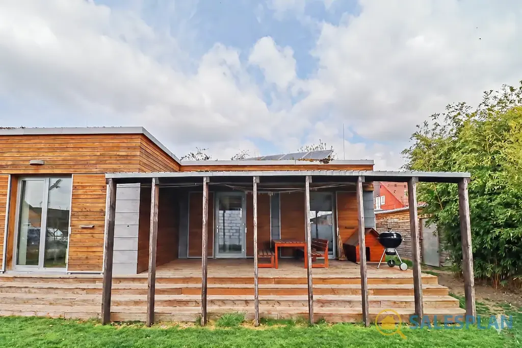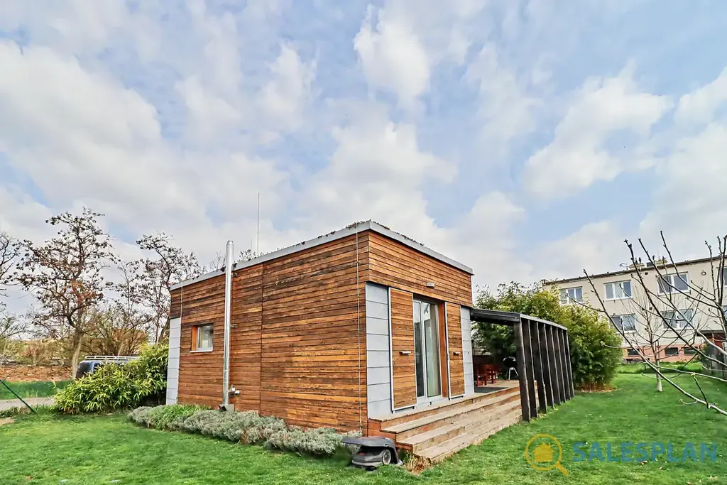 Samostatný modulový nízkoenergetický dům je umístěn v blízkosti centra v klidné vedlejší ulici. Kolaudace je datována k roku 2017. Dispoziční řešení je velmi efektivní. Obytný prostor 2+kk nabízí 48 m². Navazující zastřešená terasa s příjemným posezením má velkorysou rozlohu 32 m². Dostatek úložných prostor poskytují vestavěné skříně a samostatná garáž o výměře 23 m².