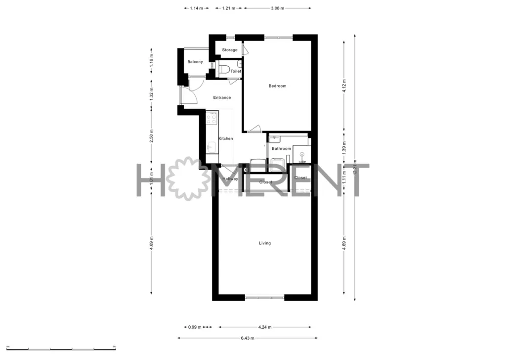Byt je nezařízený a nabízí praktické dispoziční řešení se dvěma obytnými místnostmi, což z něj činí ideální volbu pro mladý pár i spolubydlení. V jedné z místností se nachází velká vestavěná skříň, která poskytuje dostatek úložného prostoru.