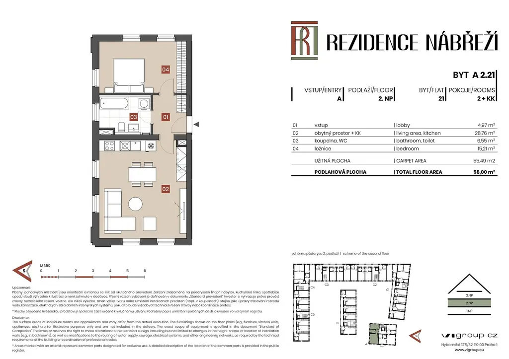 Byt 2+kk v Brandýse nad Labem-Staré Boleslavi. Tento byt se nachází v exkluzivní lokalitě ostrova v klidné části obce a je součástí projektu Rezidence Nábřeží. Byt má celkovou podlahovou plochu 58 m² a je umístěn v 2. patře třípodlažního domu. Byt má východozápadní orientaci s tím, že obývací pokoj je situován na západ, ložnice pak na východ. Byt dík své exkluzivní orientaci má výhled jak na řeku Labe tak i na Zámek Brandýs nad Labem