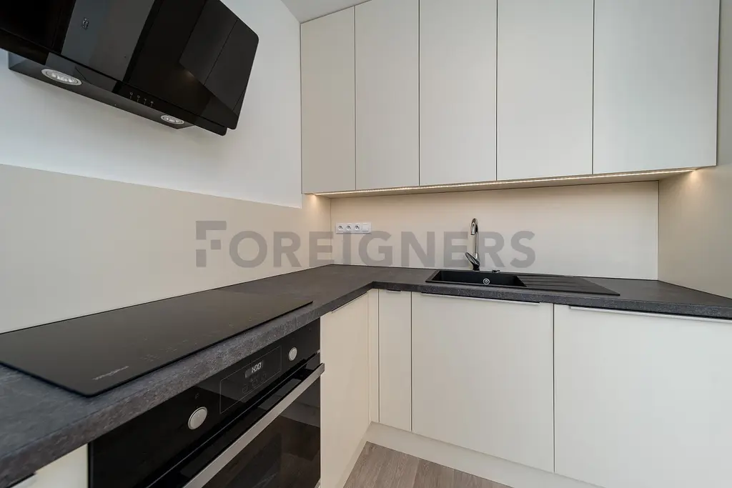 Byt se pronajímá s kuchyňskou linkou s indukční deskou, elektrickou troubou, digestoří, myčkou a vestavěnou lednicí s mrazákem.