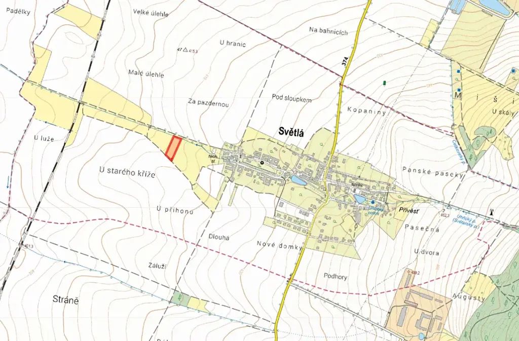 Katastrální území Světlá u Šebetova, celková výměra 3 819 m2