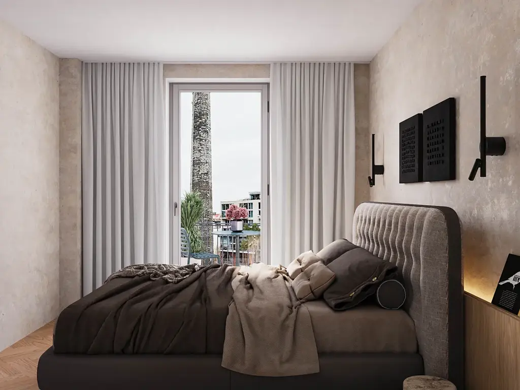 Byt č. 6 - 3+kk/B, 66 m2 + 4,2 m2 balkon v5.NP/ ve dvorní budově s výhledem na park s komínem v areálu Corso Karlín a na karlínský kostel. V rámci výstavby proběhne rekonstrukce domu (seznam na webu). Dvorní dům bude dokončen do konce roku 2026, uliční do 7/2027.
